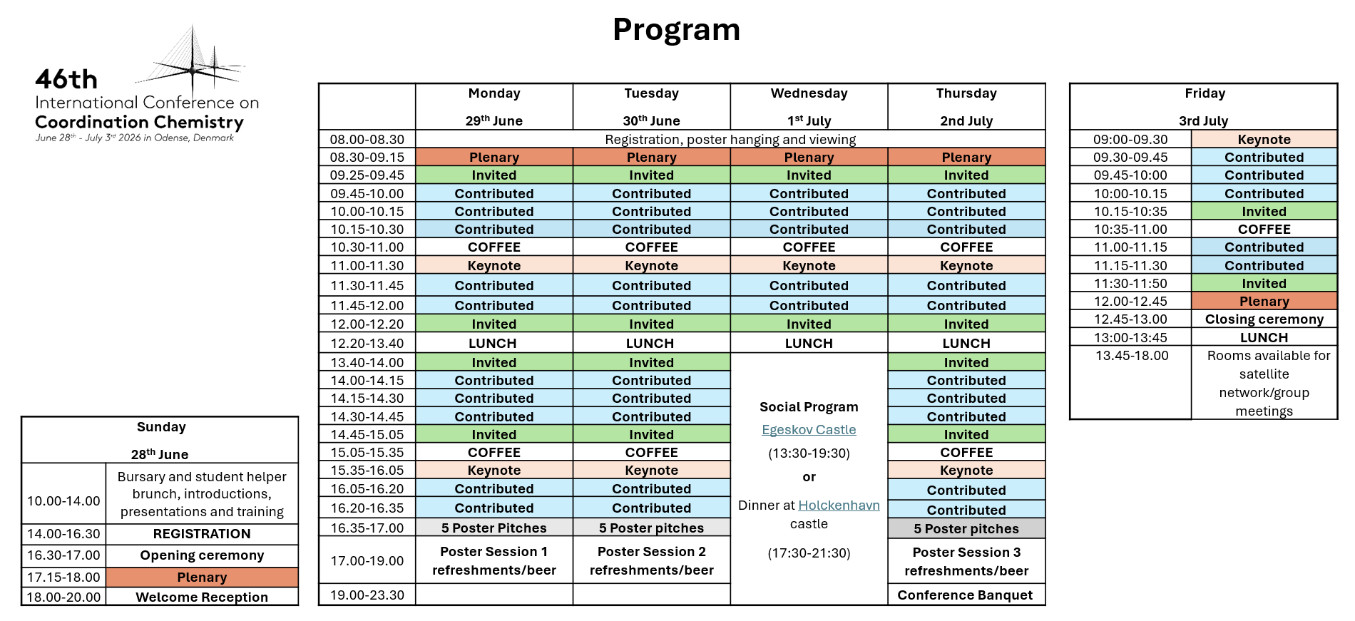 Parallel sessions with the symposia containing keynote, invited, contributed talks and poster pitches will all adhere to this scheduling. The number of parallel sessions will be decided on the basis of the number of delegates. Plenary lectures will transverse all sessions.