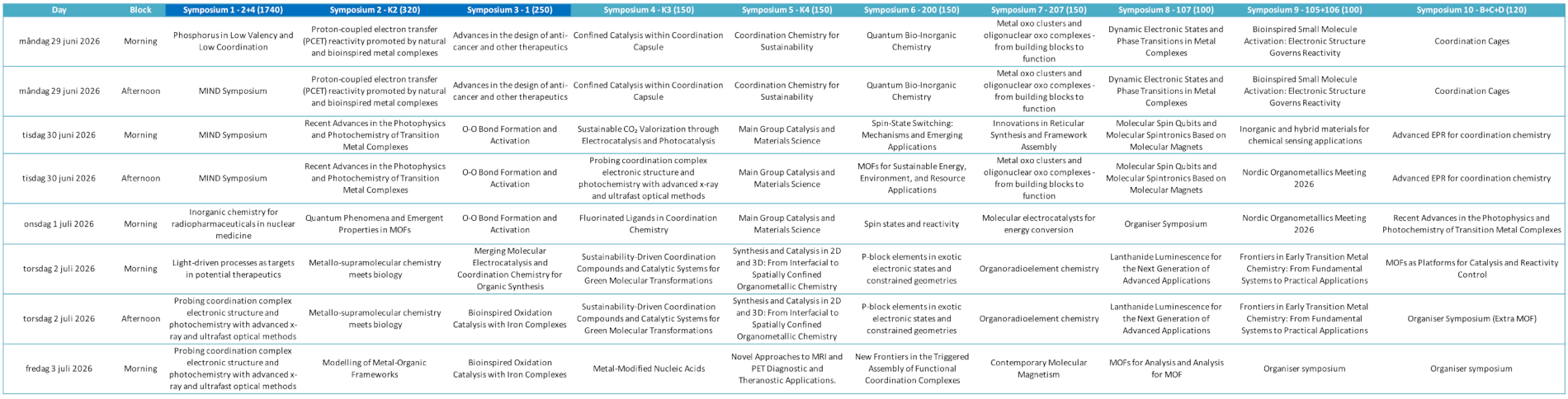 | Wednesday, July 1 Morning | Nordic Organometallics Meeting 2026 |